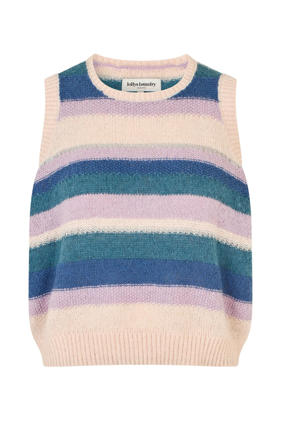 Add color and coziness to your wardrobe with the ChicagoLL vest. It features soft stripes in beautiful blue and purple tones, and its sleeveless design and relaxed fit make it ideal for both everyday wear and festive occasions.