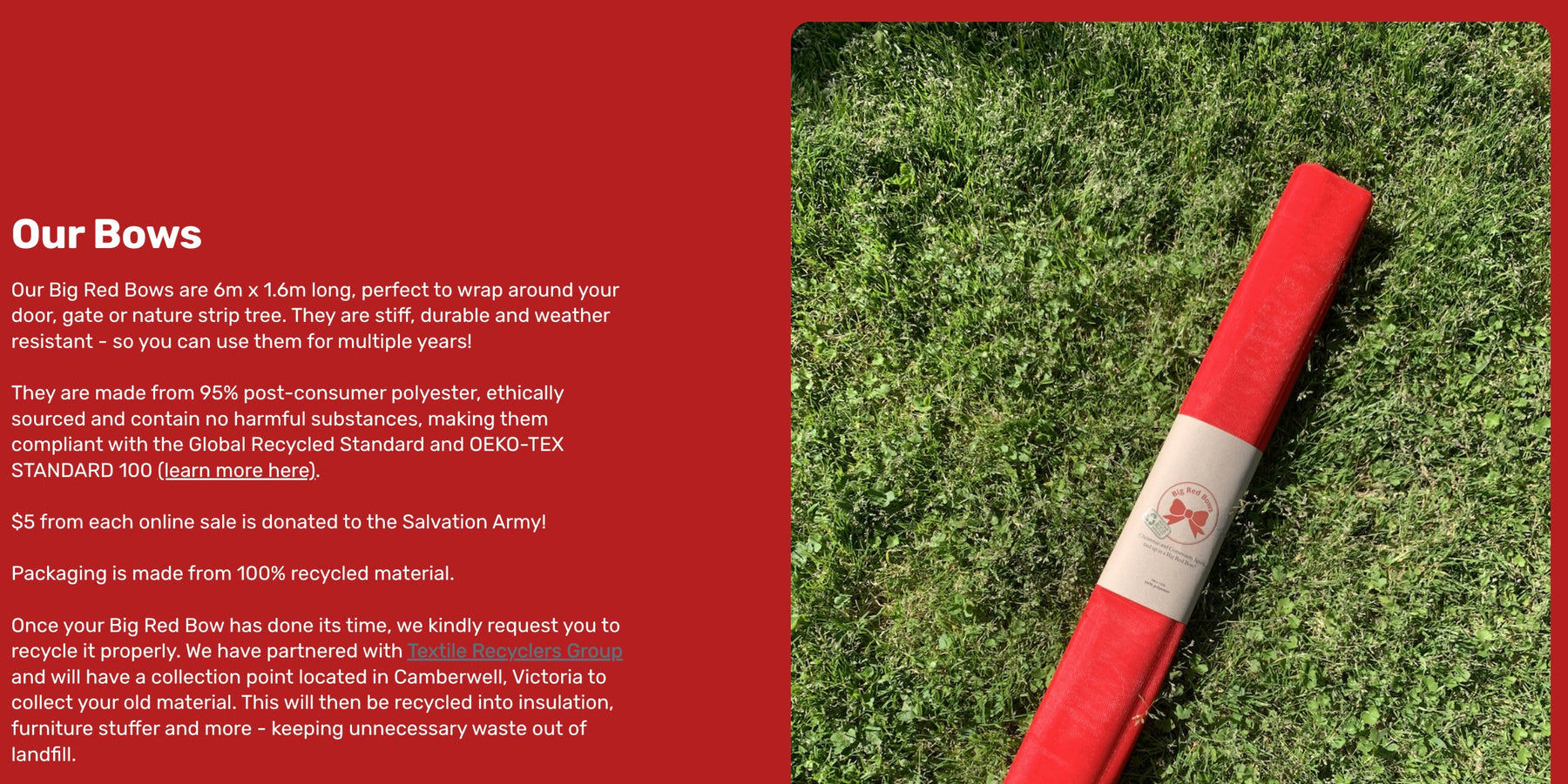 Our 'Big Red Bow' is 6m x 1.6m long, perfect to wrap around your door, gate or nature strip tree.