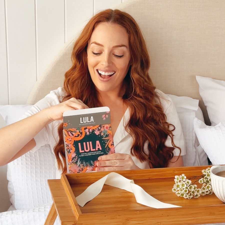 The limited edition box includes one of every Lula Eye Mask scent - Vanilla, Lavender, Rose, Jasmine and Grapefruit.