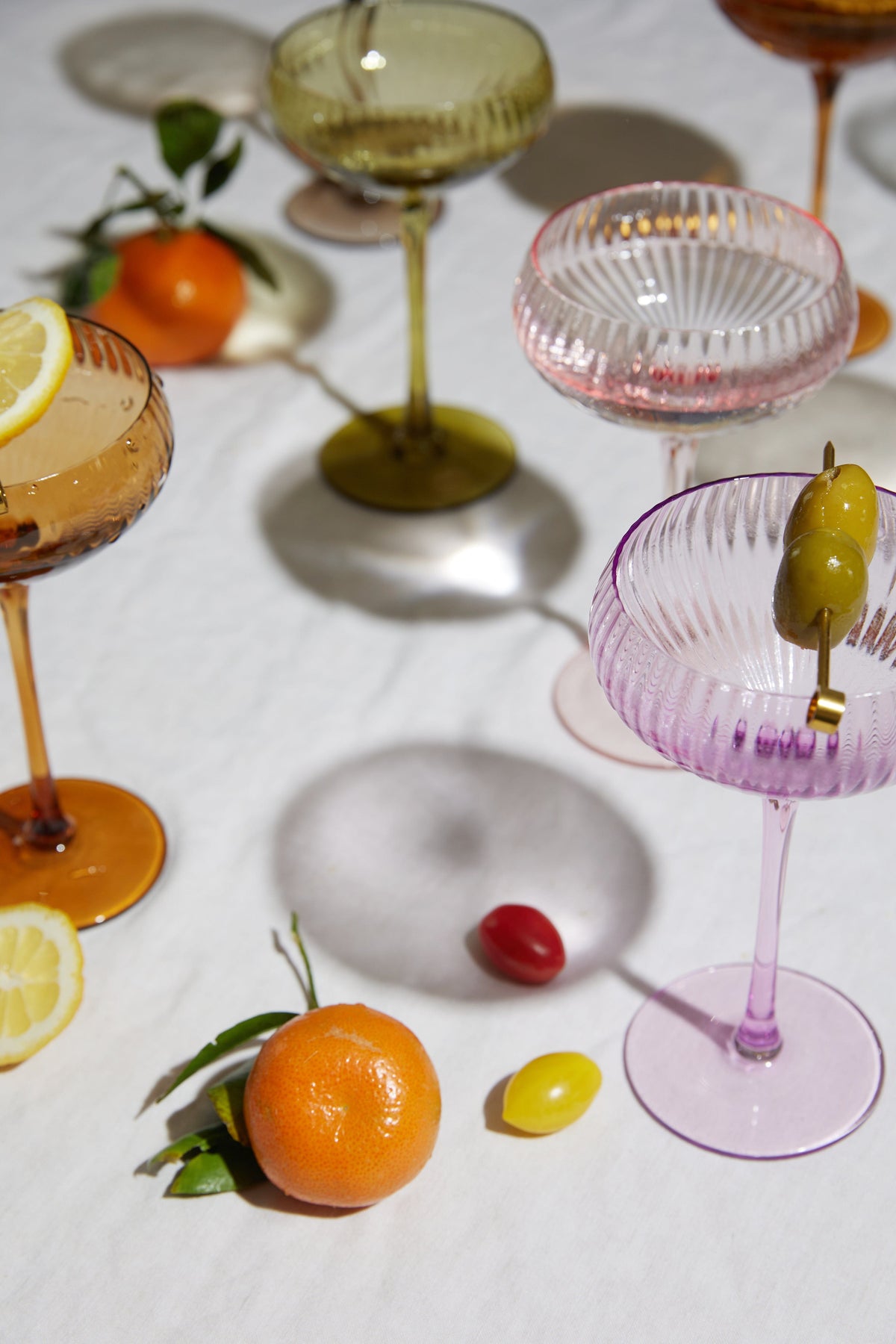 Our coupe glassware features mood-boosting colors and elegant details for the ultimate craft cocktail.