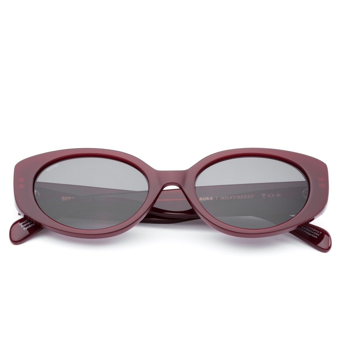 Understated polish with a modern edge, Aura Milky Berry by Sito Shades brings a quiet kind of confidence to your summer wardrobe. This versatile womenâs frame in a rich, dark red hue adds a playful pop of colour while complementing everything from relaxed weekends to dressed-up evenings. Handcrafted from plant based acetate and fitted with premium UV lenses. Designed in Australia, itâs the effortless staple for every considered wardrobe and seasonal style.