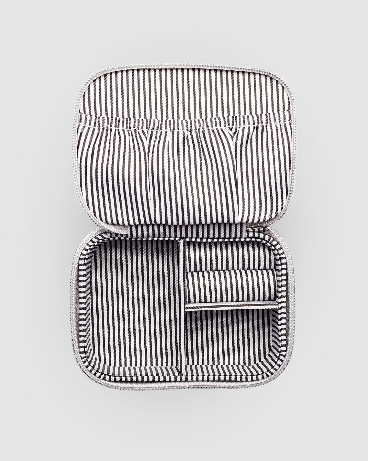 Keep your sparkling treasures safe and sound with the adorable Suzie Silver Jewellery Box! This charming travel companion perfectly organizes rings, necklaces, bracelets, and earrings, making it ideal for daily use or weekend getaways. Inside, you'll find three handy ring rolls, two compartments, and a clever elasticated slip pocket. Your favorite gems will stay perfectly snuggled and secured, no matter where your adventures take you.