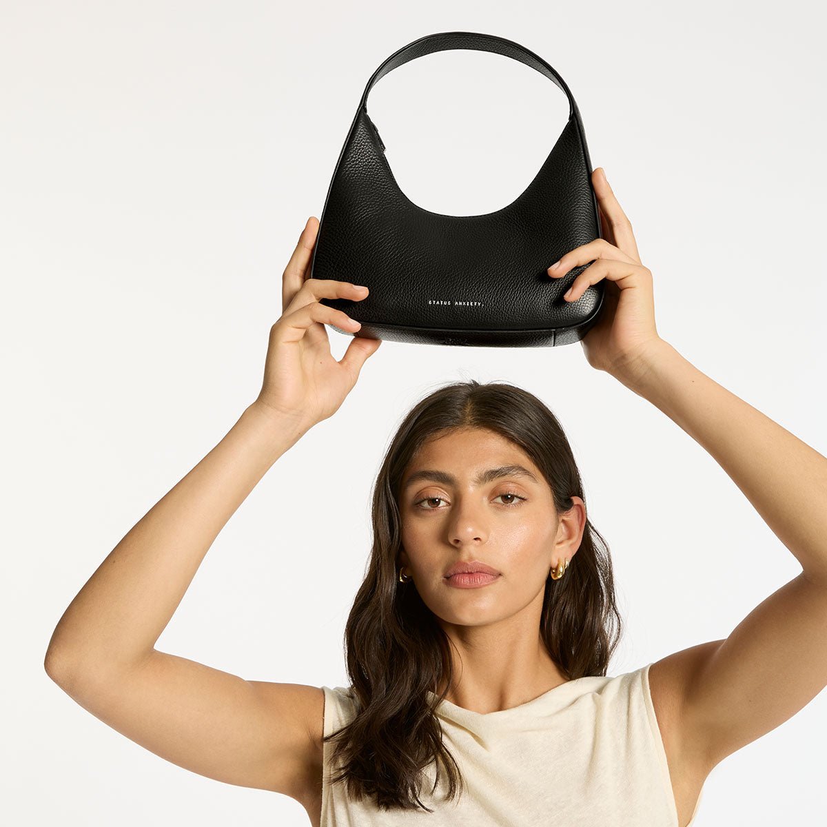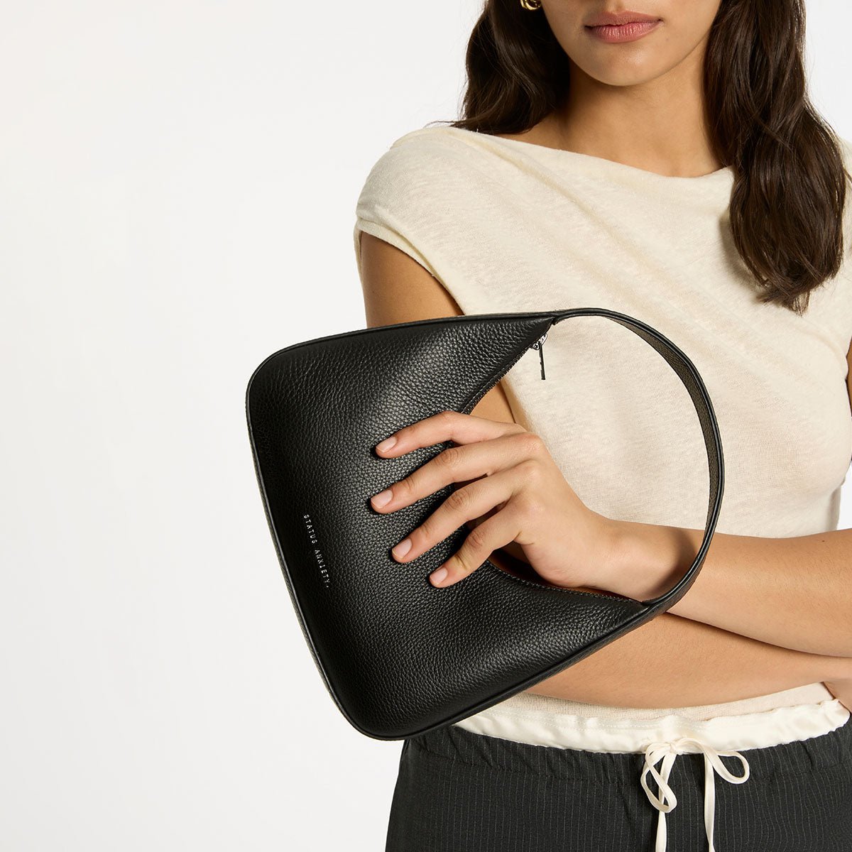 A mystical and romantic encounter. 'Aurora' with her dressier, more structured form fits perfectly under your shoulder, making her the perfect wingwoman for chance meetings of the night.