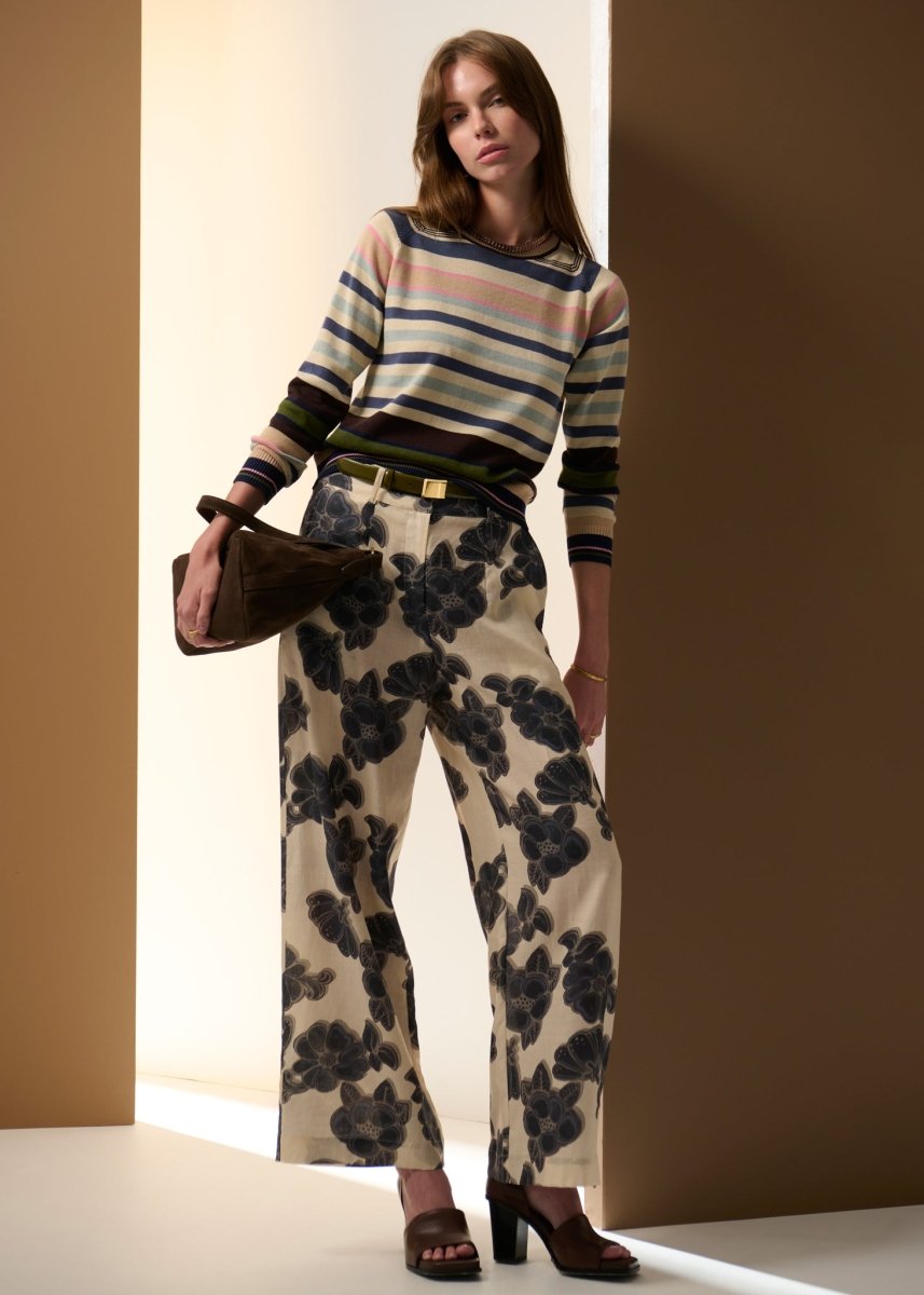 Made from a Linen and Cotton blend, the Sela Multi Striped Knit is back in a new colourway for Prefall 2026! This is the perfect lightweight, long-sleeved piece for layering in transseasonal weather, now in shades of blue, pink and green.
