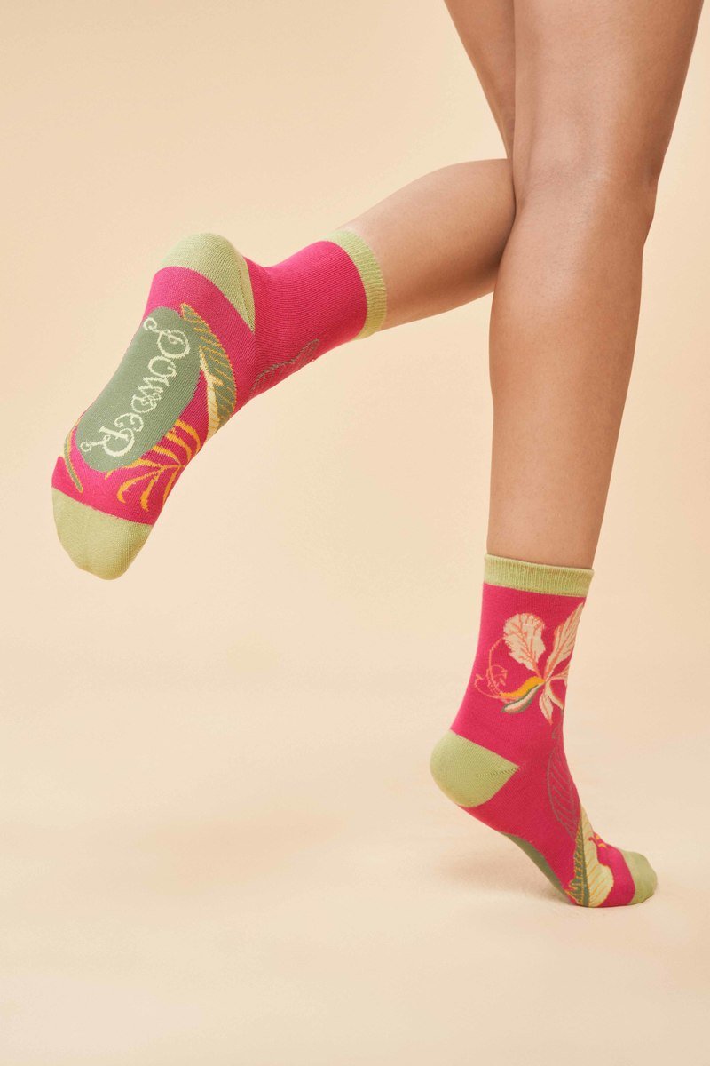 Delicate Tropical Ankle Socks - Dark Rose