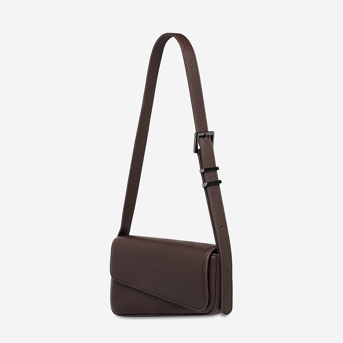 Enigmatic, young at heart, and complete with commitment issues... 'Overnight Obsession' is ready at a moment's notice.  Perfectly asymmetrical and complete with branded hardware, longer shoulder strap, and back phone pocket for quick getaways.