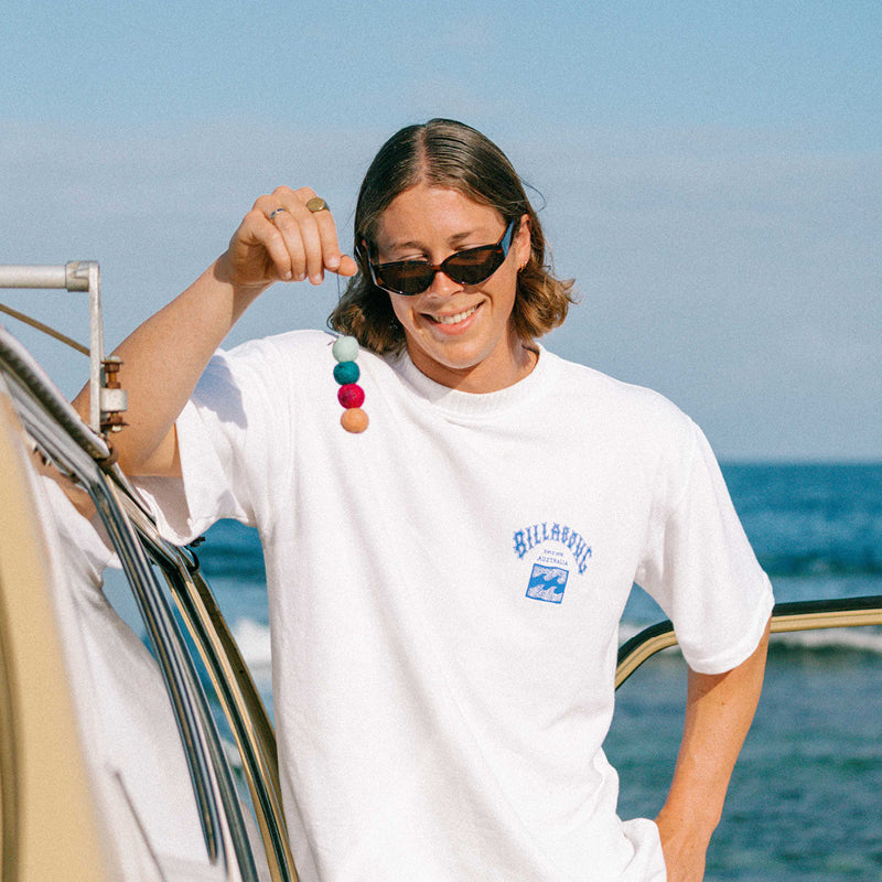 inclusions 4 Felt Balls, Branded Charm, Elastic String, Pouch, Postcard