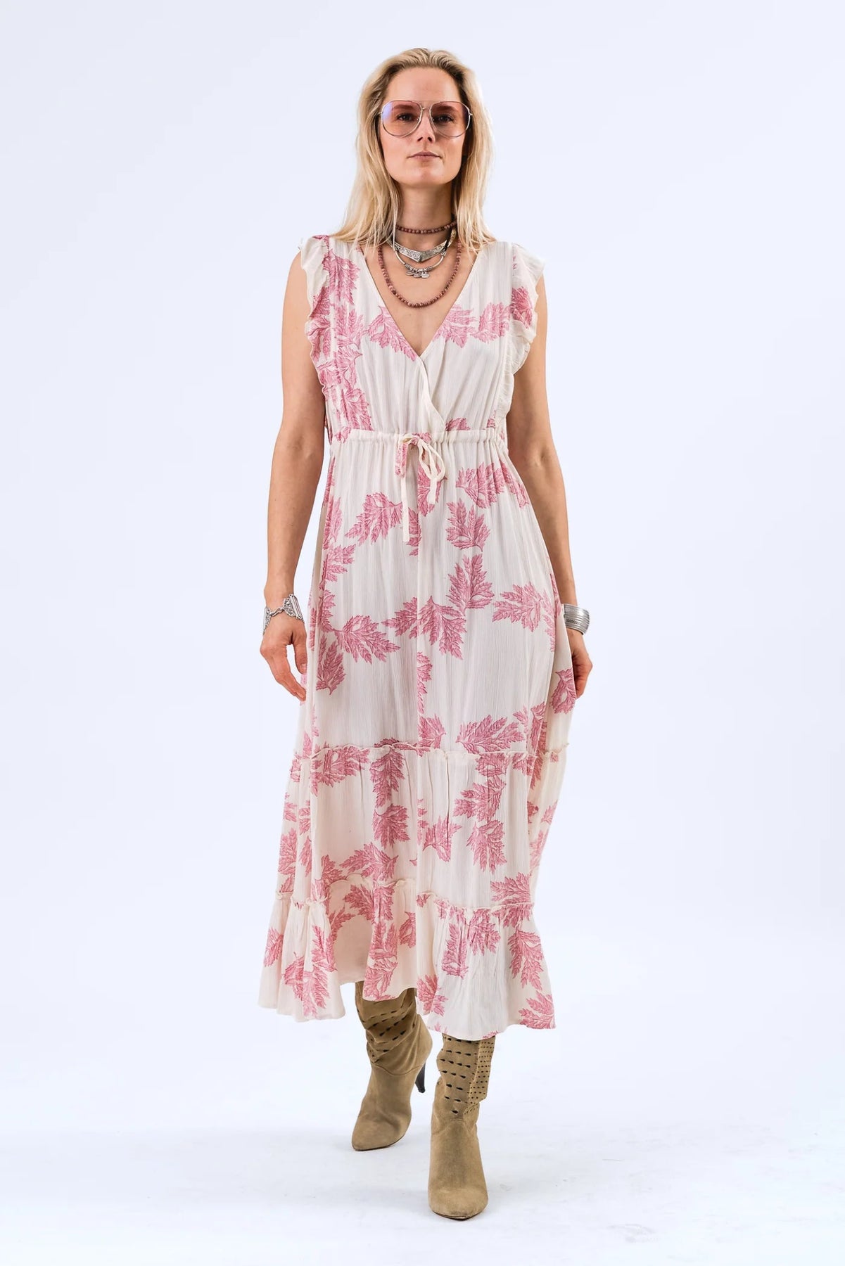 The SamoLL Midi Dress is an absolute must-have and a favorite in the collection. With its creamy background and elegant leaf print, it creates a striking and stylish expression.