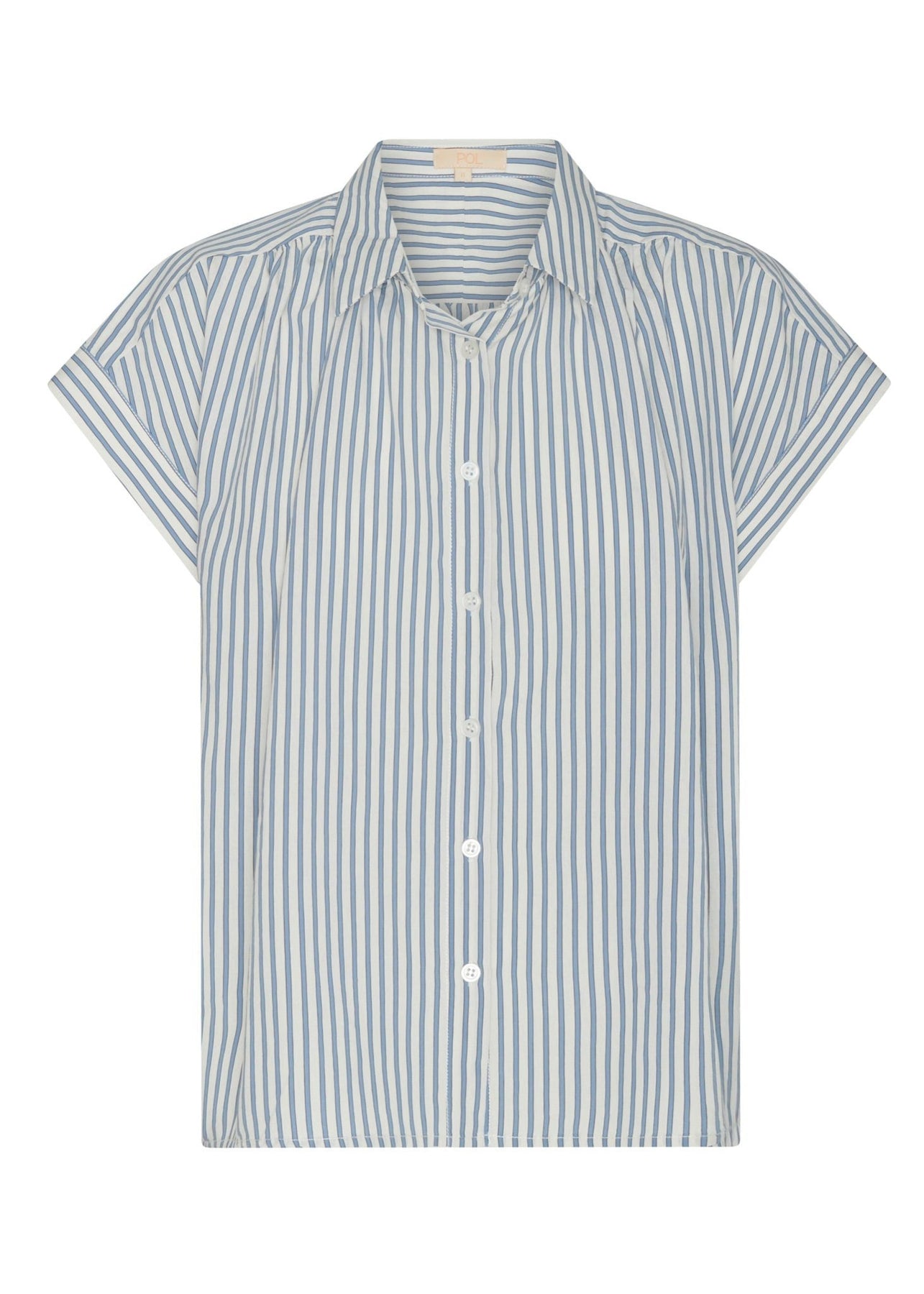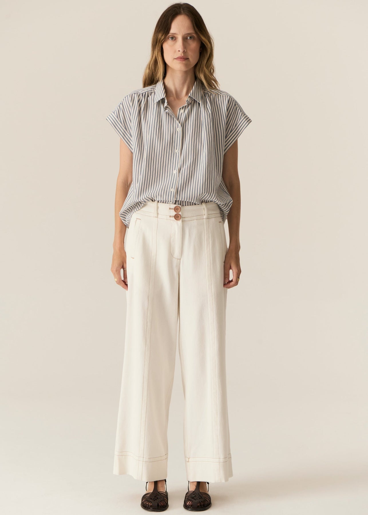 Featuring a short cap sleeve in an elevated striped shirting, the Vera Cap Sleeve Shirt is perfect for dressing up or down.